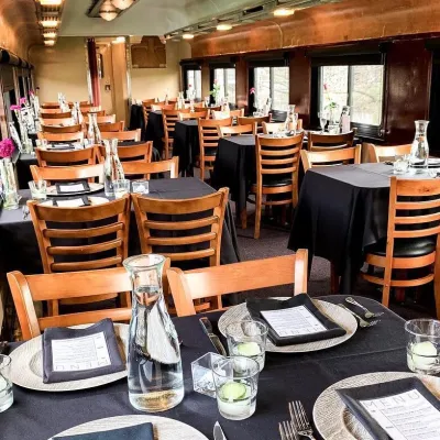 We have a beautiful fleet and more than 10 rail cars that were built between 1931 and 1937. Most of our cars have had their interiors restored and altered for more modern uses. Our variety of dining cars, coaches, lounge cars, and our private business car make the perfect location for weddings, corporate events, private charters, and more!